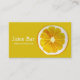 Una tarjeta de visita para un Juice Bar, una tienda de zumos, jugo verde o un negocio de bebidas saludables hipster. Esta tarjeta es elegante y elegante, y cuenta con un original ilustracion de acuarela de arte de la artista Sacha Grossel, de una tajada saludable de cítricos amarillos de limón en un elegante fondo amarillo canario. Esta tarjeta es totalmente personalizable para incluir sus propios datos personales y enlaces a páginas de instagram, web o facebook.