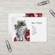 Tarjeta De Visita KITTEN CON ROSAS, Papel blanco rojo negro