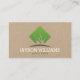 Un diseño limpio y moderno de cuchillas de hierba de silueta dentro de un logotipo verde y marrón combina tu nombre o nombre de negocio para una estética profesional en esta plantilla de tarjeta de presentación de papel kraft. Diseñado para los profesionales del césped y el jardín. Material gráfico y diseño © 1201AM Design Studio