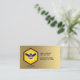 Tarjeta de visita del apicultor con un icono de abeja miel con alas sobrepuestas sobre una forma de peine hexagonal de limón amarillo y negro a juego, y gradiente dorado de bronce en la parte delantera y trasera. Podemos personalizar este diseño para usted por petición cuando utilice el enlace "Contacto" para nuestra tienda de abajo. © punto
