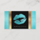 Tarjeta De Visita Labios Purpurinas verde azulados y oro elegante