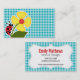Tarjeta De Visita Ladybug y Flower sobre el Gingham azul-verde