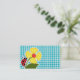 ¡Te encantará esta linda mariquita roja con flor amarilla en el diseño del patrón de Gingham azul-Verde! Le invitamos a nuestra tienda, Birthday Party House, para ver este diseño de moda y temática de canto de canto en muchos más productos de personalizable, incluyendo invitaciones a bonitos y adorables tarjetas de cumpleaños.