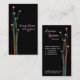 Diseño de una plantilla de tarjeta de visita con un motivo de flores de tallo largo multicolor. Diseñado con la industria de la belleza en mente, pero puede adaptarse para muchos otros usos. El nombre de la empresa y el tipo de comercio están al frente con el nombre y los datos de contacto, etc. al revés. Nota: he roto el campo de nombre en dos partes para tu primer y segundo nombre. Esto se ha hecho para alinear el texto de manera atractiva. Dado que sus detalles serán sin duda diferentes de los del ejemplo, es posible que necesite mover las cosas un poco para que parezca bien. También puede cambiar el color de fondo de este diseño.