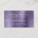 This elegant modern business card features a background image of lavender purple faux brushed metal foil. The word "Microblading" appears on the front of the card in white handwriting script. Personalize it with your name in white sans serif font and your contact information on the back.