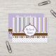 Una tarjeta de visita encantadora para las tiendas de dulces, chocolatinas o panaderías. Este original diseño presenta rayas de lavanda emparejadas con un llamativo listón marrón y puntas de polka, creando una tarjeta de visita que exuda dulzura y sofisticación. La parte posterior tiene espacio para su etiqueta e información de contacto.