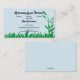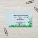 ¿Estás iniciando un negocio de cuidado de jardín y césped? Entonces, ¡esta tarjeta es para ti! Cuenta con un gráfico de hierba verde y plantas sobre un fondo azul pálido. Todo en el frente es editable. Disfruta de tu nueva tarjeta de visita Lawn and Garden Services.