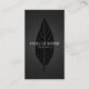 Tarjeta de presentación de hojas negras con fondo metálico.