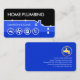 Over at the top is your business name "HOME PLUMBING" which you can change. Inside the blue layers is your prestigious name in light blue alongside an array of plumbing icons ; These may represent some of the services that you offer.