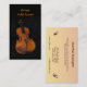 Esta tarjeta de visita hace publicidad de lecciones de violín. El frente todavía presenta una vida clásica de un violín viejo elegante. Este instrumento agraciado es esencialmente una caja de madera hueco con los extremos redondeados, dos agujeros agraciados de f y un centro estrecho. Los cuatro sistemas de secuencias extienden de un tenedor de la secuencia en la parte inferior del cuerpo sobre un puente aumentado al extremo del cuello estrecho, o del fingerboard donde las cuatro secuencias se insertan en un pegbox y se sostienen allí con las clavijas. Las clavijas se utilizan para adaptar el violín. ¡Cuando el arco se dibuja a través de las secuencias en el cuerpo del violín produce música increíble, mágica! El marrón de oro magnífico, los tonos casi anaranjados es fijado apagado por la tela negra agraciada del terciopelo. El revés tiene la mayor parte del texto pertinente. Todo el texto se puede modificar para requisitos particulares para adaptarse a su situación personal.