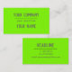 Tarjeta de visita en fondo verde fluorescente de color sólido y letras intrépidas. Diseño simple y de moda por el taco de Alma. Ahora personalice ambos lados. Viene 100 en un paquete.