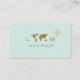 A chic pale blue business card for a travel agent... with monogrammed name, a faux gold (ocher color) map of world and an airplane, with some very thin lines along the light blue background.