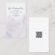 Personalice la tarjeta de visita bonito Light Pale Purple Crystals Salon / Spa con su logotipo, nombre de su empresa, información de contacto y código QR propio para satisfacer sus necesidades de negocio. Estas elegantes tarjetas de llamadas incluyen una fotografía de cierre etéreo de un espécimen geodésico de cuarzo de roca blanca con un toque violeta pálido añadido y un fondo blanco. Clara cuarzo también se conoce como "sanador maestro" y "piedra de poder" y se dice que amplifica cualquier energía o intención y hace una mejora o adición única a sus productos promocionales de la empresa. Idea perfecta para masajista natural, curador reiki ayurveda o profesional estético.