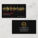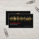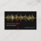 Una cubierta negra presenta un diseño de onda de frecuencia de sonido dorado con una pantalla de pulso eléctrico subyacente. Un marcador vertical rojo resalta tu prestigioso nombre y título de trabajo. Tienes una opción de slogan para publicitar tus servicios en la esquina inferior derecha de la tarjeta.