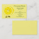 Una tarjeta de visita, con un ilustracion sonriente del limón, y texto editable