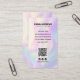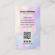 Haga una declaración elegante con estas modernas tarjetas de visita holográficas. El diseño iridiscente y pastel es llamativo y único, perfecto para los peinadores que quieren destacar. El código QR añadido proporciona un acceso fácil a su presencia en línea - medios sociales, sitios web, reservas de enlaces - para una experiencia de cliente sin problemas.