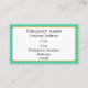 Una divertida y simple tarjeta de visita con un perro envuelto en una toalla, con una máscara para los ojos, con sus patas estiradas listas para ser mimadas. Presentado sobre un fondo verde verde azulado. Hay mucho espacio para añadir los detalles de su negocio a su gusto.