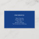 Un diseño limpio y moderno con una foto de un conserje con un cubo y una cortina, acompañado de detalles de contacto sencillos y una lista azul de servicio en la parte posterior. Diseñado para limpiadores profesionales y servicios de conserjería.