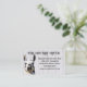 Llama business cards with knit stitches background. Customize black text in two places with bolder, modern printing at the top for the business name. All other information is in paragraph form next to a fun, black and white llama face. Perfect for a specialty yarn shop, knitting teacher, fiber artist, or llama farmer.