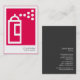 Una plantilla de tarjeta de visita con un diseño vertical moderno y atractivo y un símbolo en negrita Spray Can sobre un color o fondo de tonificación (que también se puede cambiar). El área de borde blanco también es una máscara de marco que le permite reemplazar la imagen principal por la propia si es necesario. Información de la empresa en la parte delantera con el nombre y los datos de contacto en la parte posterior. Se puede adaptar a una variedad de negocios y otros usos. Este diseño también puede ser adaptado para su uso como tarjeta de perfil eliminando o intercambiando los datos de la empresa y el nombre personal. También es genial para promocionar CDs, bandas, conciertos, o podría ser usado para hacer entradas para eventos, invitaciones para la vista previa de la exhibición, etc.