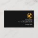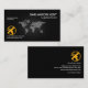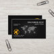 La tarjeta presenta una cubierta negra con un mapa del mundo subyacente contra una parrilla metálica. Se utiliza una viñeta para acentuar el diseño. Su prestigioso nombre y cargo están en la esquina superior derecha. Ocasionalmente, es una opción slogan para anunciar sus servicios. En la parte inferior están su logotipo y sus datos de contacto".