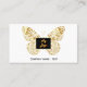 Un elegante fondo blanco decorado con una falsa mariposa dorada. Personalice y agregue el logotipo y el texto de su empresa al frente. Atrás: Plantillas para su nombre, título, número de teléfono, dirección de correo y sitio web, código QR. Perfecto para empresarias, consultoras, dueñas de negocios.
