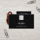 Un fondo negro con texto blanco. Personalice y añada su logotipo de negocio, iniciales de monograma, nombre y nombre completo en la parte delantera. Atrás: Plantillas para tu foto de perfil, nombre, título, número de teléfono, correo, dirección de sitio web, tu propio código qr en tu sitio web o cuenta de medios sociales.