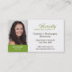 Incluya el logotipo de la empresa y su imagen en esta tarjeta de visita fácil de personalizar. Este diseño limpio y directo es la mejor manera de transmitir tu mensaje y profesionalidad. Para cambiar el bloque de color verde para que coincida con el color de su empresa, simplemente haga clic en el botón "Personalizar it!". Haga clic en "editar" y seleccione "fondo". Aparecerá una paleta de colores y sólo tendrá que hacer clic en el color deseado.