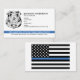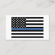 Este diseño presenta un tema de la bandera de la policía con una delgada franja azul. Personalizar con el nombre, cargo e información de contacto del agente del orden, el comisario, el capitán, el jefe o cualquier empleado que trabaje en el departamento de policía. Cuenta con una delgada bandera azul en la parte posterior.