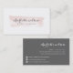 Elegantes tarjetas de negocios de color gris y rubor con tu nombre o nombre de negocio en un fondo de agua color rosa y rosa, con tus detalles de contacto completos en la parte posterior en blanco sobre gris.