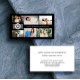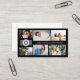 Tarjeta de visita negra para un fotógrafo profesional, donde puede mostrar su trabajo en un collage de fotos con espacio para seis de sus fotos en tres tamaños diferentes. Agregue su nombre o nombre comercial y logotipo en la portada. Este diseño funciona mejor con un logotipo ligero, debido al fondo negro. Añade tu información de contacto en la parte posterior. Una tarjeta de visita elegante y minimalista, perfecta para un fotógrafo de boda, o incluso para un maquillador, artista, diseñador de joyas y mucho más.