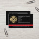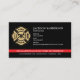 Este diseño presenta un tema de la bandera del bombero con una fina franja roja. Personalizar con el nombre, cargo e información de contacto del bombero, capitán, jefe o cualquier empleado del departamento de bomberos. Cuenta con una bandera de línea roja delgada en la parte posterior.