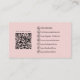 Destacar con esta tarjeta de visita de panadería de moda y personalizable de fondo blanco y rosa suave, que puedes cambiar fácilmente para que coincida con tu marca. Añada su propio logotipo en la parte delantera para mostrar su marca y personalizar los detalles para que encajen en su negocio. La parte posterior de la tarjeta incluye iconos reemplazables y un código QR escaneable, perfecto para compartir el menú, los servicios o la información de contacto con un análisis rápido. Ideal para panaderías, pasteleros y panaderías que quieren dar una impresión dulce y profesional.