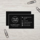 Color negro o personalizado, diseño moderno, elegante y profesional de tarjetas de visita con campos de plantilla para el nombre, el nombre/título de la empresa, logotipo (foto u otro gráfico) e información de contacto, incluidos iconos de medios sociales. Cambiar el color de fondo, mover y cambiar el tamaño de los elementos con la herramienta de personalización.