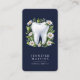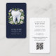 Tarjeta de presentación moderna y elegante con logotipo de dentista, diseñada para dar una impresión duradera. La parte delantera incluye dos líneas de texto junto a un sofisticado logotipo de diente floral colocado sobre un fondo marino. Personalice la parte posterior con un código QR, identificadores de medios sociales y detalles de contactos para mejorar la conectividad y la accesibilidad. Ideal para odontólogos, higienistas dentales y otros profesionales de la odontología, esta tarjeta de visita combina profesionalidad con un toque de elegancia, asegurando que usted destaque en su campo.