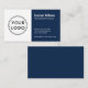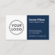 Tarjetas de visita modernas de color blanco y azul oscuro con la plantilla de logotipo personalizado. Diseño moderno y minimalista. Las fuentes, los colores de fuente y los colores de fondo se pueden cambiar con la herramienta de diseño.