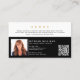 Este diseño único te ayudará a destacarte de la multitud. Puedes subir tu logotipo al frente de la tarjeta y cambiar la imagen de fondo a uno de tus propios anuncios. En la parte posterior hay un código QR - simplemente escriba el vínculo en el cuadro de texto en las opciones de personalización. Puedes dirigir a los clientes a tu página de inicio del sitio web, página de anuncios actual o incluso a tu cuenta de medios sociales. También hay espacio para una captura de pantalla que ayude a generar confianza con sus clientes potenciales.