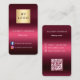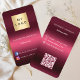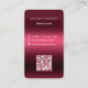 Un fondo de degradado de color burdeos y rosa. Personalice y agregue su logotipo comercial, nombre, título e información de contacto. Agregue su dirección URL/enlace del sitio web al código Qr. Con iconos de Facebook e Instagram. Texto blanco.