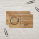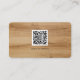 Logo Social Media QR Código Carpintería Wood Modern Business card incluye el logo corporativo, con su nombre, contacto y detalles de medios sociales sobre un fondo de madera. Al revés, el código QR para que sus clientes lo examinen. Personalice editando el texto en el cuadro de texto proporcionado. Diseñado por ©Evco Studio www.zazzle.com/store/evcostudio