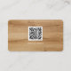 Logo Social Media QR Código Carpintería Wood Modern Business card incluye el logo corporativo, con su nombre, contacto y detalles de medios sociales sobre un fondo de madera. Al revés, el código QR para que sus clientes lo examinen. Personalice editando el texto en el cuadro de texto proporcionado. Diseñado por ©Evco Studio www.zazzle.com/store/evcostudio