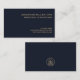Dé una impresión duradera con nuestras tarjetas de visita con el logotipo profesional simple clásico, que presentan una tipografía tradicional sobre un rico fondo azul marino oscuro. La parte posterior incluye un emblema profesional de sello dorado que puede actualizarse con su logotipo. Perfecto para cualquier profesional de negocios que busca una impresión duradera.