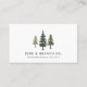 El diseño rústico y refinado de las tarjetas de visita incluye un trío de pinos en tonos apagados de cazador y verde del bosque, con dos líneas de texto personalizado debajo del nombre de su empresa y su nombre o descripción de su negocio, en una combinación de moda de letras en bloque y cursiva. Añade toda la información de contacto al reverso en blanco sobre azul polvoriento.