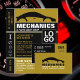 Logotipo de coche negro y dorado, tarjetas de visita mecánicas automáticas de la tienda de tarjetas de visita.