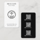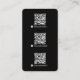 Una plantilla moderna y mínima de tarjetas de visita en blanco y negro que se puede personalizar según el nombre de su empresa, el texto, el logotipo comercial, los detalles de contacto digitales y 3 códigos QR escaneables. Personalizar cada código QR a tus enlaces de medios sociales, sitios web, tiendas en línea, etc. Ideal para empresas que sólo pueden ponerse en contacto en línea y que desean tener una tarjeta de contacto digital escaneable.