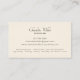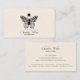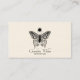 Una elegante y sencilla tarjeta estética de negocios con una hermosa mariposa ilustrada y un tipo de guión fluido como una simple tarjeta de visita en blanco y negro. Enumera sus propios servicios en la parte posterior de la tarjeta con otra información de contacto. La mariposa simboliza la transformación, un diseño simbólico perfecto para un esteticista. Imagen de mariposa por diseños de Opia.