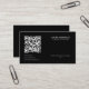 Una Tarjeta De Negocio De Diseño Personalizado De Diseño Personalizado De Código QR En Negro. Personalizar esta tarjeta de visita con su propio código QR, logotipo de la empresa (redimensionar y ajustar en el área de edición), nombre y etiqueta/texto.