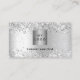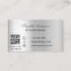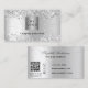 Un elegante fondo falso plateado decorado con confeti. Personalice y agregue el logotipo y el texto de su empresa al frente. Atrás: Plantillas para su nombre, título, número de teléfono, dirección de correo y sitio web, código QR. Perfecto para empresarias, consultoras, dueñas de negocios.