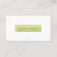 Las tarjetas de visita elegantes y femeninas dejan una impresión moderna y profesional y parecen distintivas. El diseño minimalista incluye un rectángulo verde limón con un borde geométrico negro con su nombre o nombre de negocio en el centro, con letras negras modernas. Personalice el reverso con toda su información de contacto en negro sobre fondo blanco con borde verde y negro. Este diseño es parte de una colección, por favor visite nuestra tienda para otros artículos que coincidan. Hay otros colores disponibles. Cualquier color disponible bajo petición, escriba en citronelladesign@gmail.com