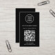 Tarjeta de negocios negra moderna y profesional para su empresa con su código QR para que los clientes puedan buscar una lista de sus productos, servicios, precios u otra información. Sube tu logotipo y código QR y agrega tu nombre de negocio, sitio web, eslogan, número de teléfono, dirección de la calle, etc. en una tipografía blanca simple.