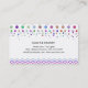 Esta tarjeta está diseñada con puntos de polka y patrón de chevron con colores elegantes para presentar su negocio de cuidado de una manera colorida. Así que el tipo de letra también se usa en consecuencia, pero el tipo de letra y el diseño según sus necesidades se pueden modificar fácilmente.